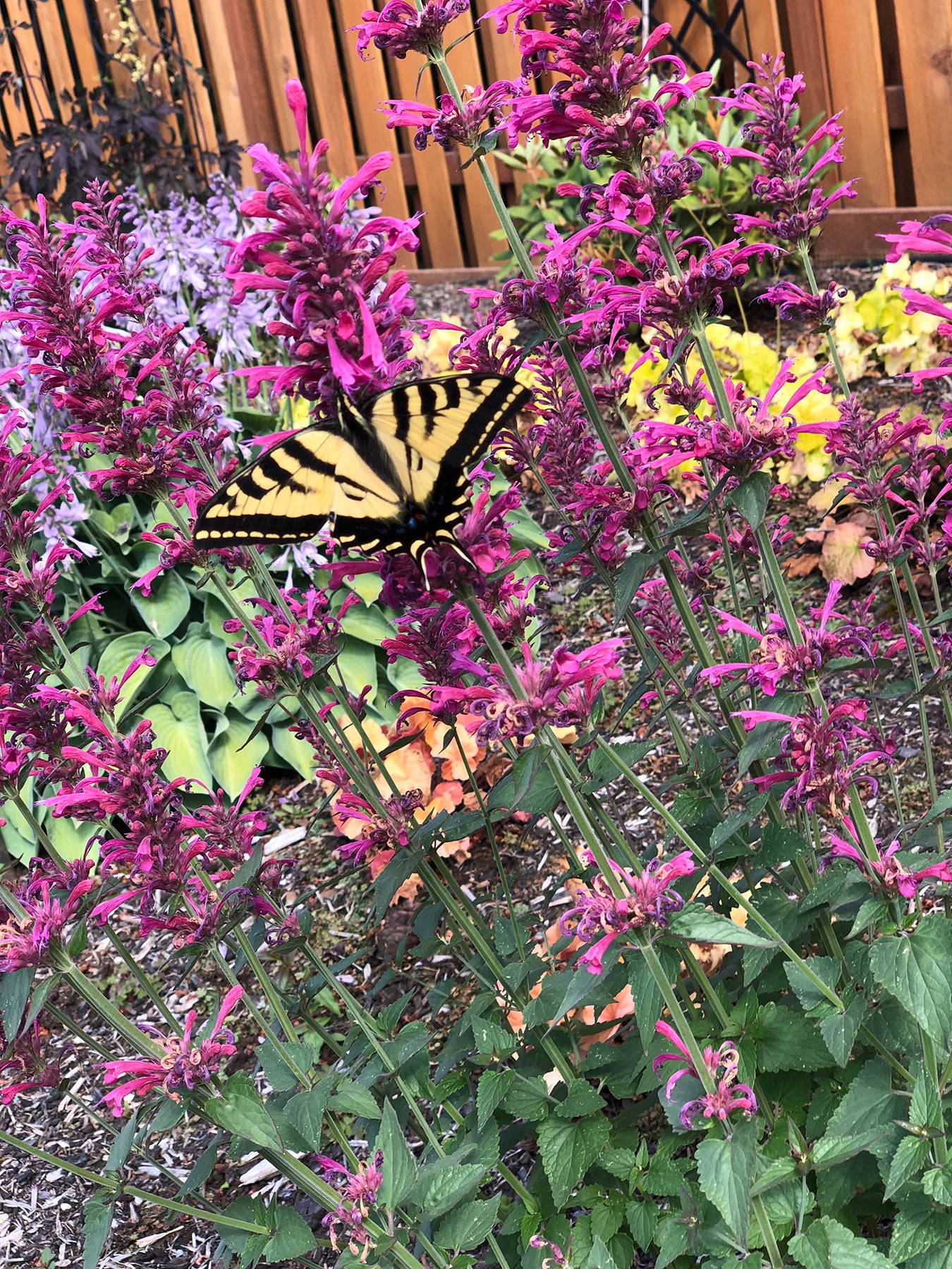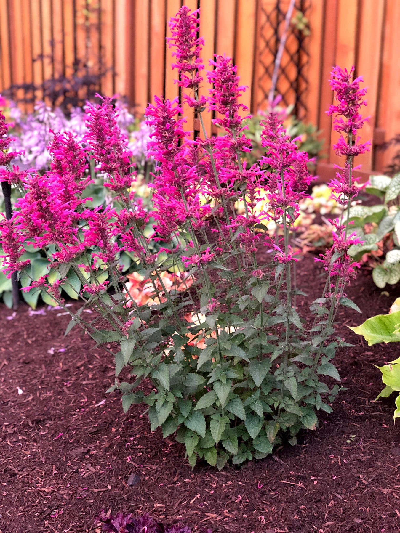 Agastache 'Morello' has large burgundy-rose tubular flowers that are non-stop from spring to fall. This vigorous grower puts out multiple crowns for a dense display of blooming stalks. The mid-green foliage takes on purple hues when the temperatures are cool further complimenting the radiant blooms. The blooms and foliage are aromatic. Loved by hummingbirds, butterflies, and pollinators.