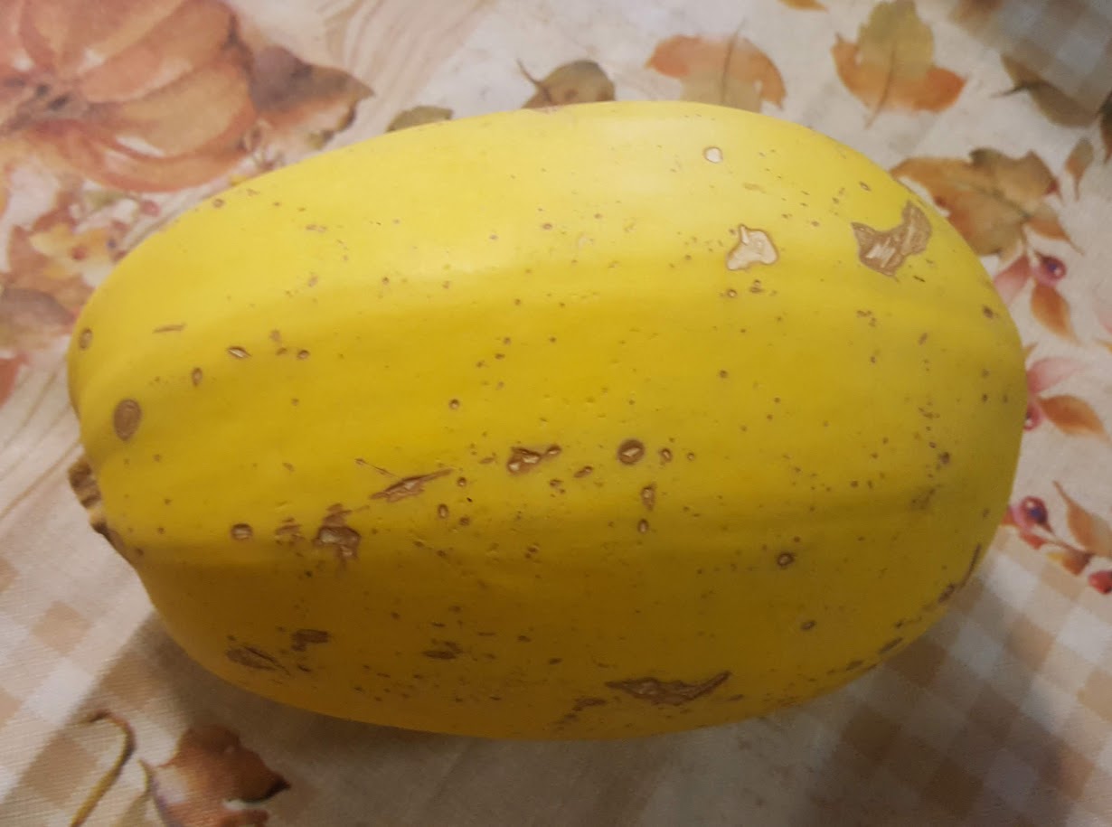 Spaghetti squash is a popular health food that is used as a substitute for pasta.  The sweet flesh is tasty by itself and there are numerous recipes beside spaghetti that it can be used for.  Once roasted the stringy flesh separates easily with a fork just like noodles.  The end product is as soft as noodles but with a more complex flavor.  The rind is very hard and will store for 4-6 months or more from harvest.  Kids love the spaghetti too.